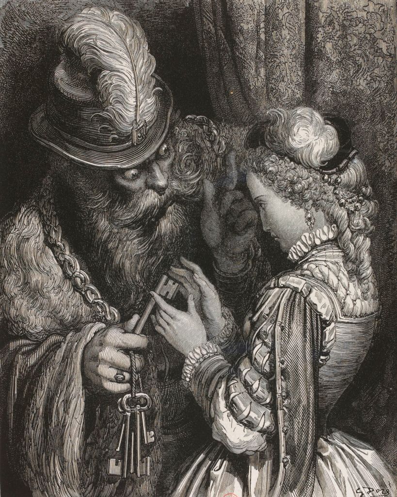 In the title story of the collection, The Bloody Chamber, a young woman is traveling by train from Paris to her new home, a fairy tale castle seemingly out of legend. Her husband is asleep near her, and she, a young pianist, lies sleepless, not knowing what to expect of her married life. Her husband, a marquis who is much older than she and much richer than she, had three wives before her— an opera diva, an artist’s model, and a countess— all of whom died under mysterious circumstances. On arrival at the castle, her husband tells her she can go anywhere – except into a strange room that he always keeps locked.
