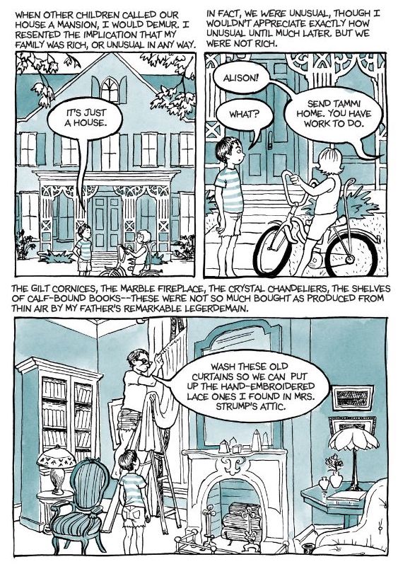 Subtitled ‘A Family Tragicomic’, Fun Home is a graphic novel recounting the story of Alison Bechdel coming out as a lesbian. Told in non-chronological flashbacks to her childhood in Beech Creek, a small rural town tucked into the Allegheny Mountains, Pennsylvania, the story is also a way of Bechdel making sense of her father’s death by comparing his life to her own. Throughout the novel, Bechdel works through her difficult childhood relationship with her father, Bruce, and her gradual discovery that he, too, harboured secrets from Bechdel, her mother and siblings. Bechdel remembers her father’s impatience, how quick he was to lash out in punishment, and how insecure he felt about his appearance. Although to the rest of the community, the Bechdel household represented the ideal ‘nuclear family’, her father’s secrets would come to undermine everything Bechdel thought she believed and risked making her childhood memories nothing more than a sham.